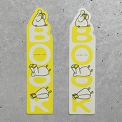 『BOOK』の文字の上で戯れるアヒルさんの型抜きしおり。少しだけ本から覗かせると読書アヒルさんが目印に。